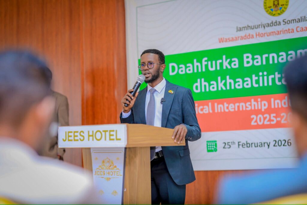 Dr. Ahmed Mahmoud Jama indicated that the Ministry is giving special priority to building the health workforce, in order to obtain doctors with competence, professional ethics, and compliance with the national health system. He urged the doctors who are starting the internship to demonstrate responsibility, patience and community service, as they play a direct role in saving and caring for the lives of citizens.